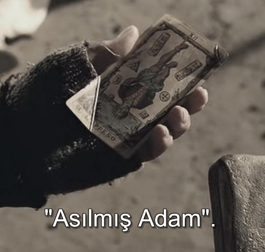 Masonik semboller. Ve tarot kartındaki ayağından asılı olan adam figürüne dikkat, satanist bir ritüeldir.